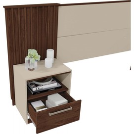 -2 Mesillas de noche con cajón grande con tirador de aluminio, guías metálicas telescópicas y hueco.