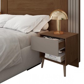 -2 Mesillas de noche con cajón con guías metálicas, hueco y patas de madera.