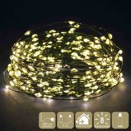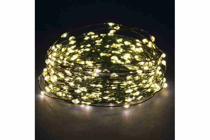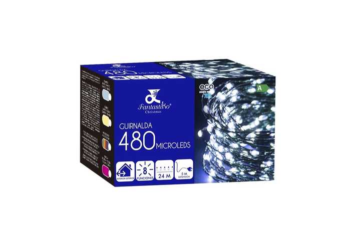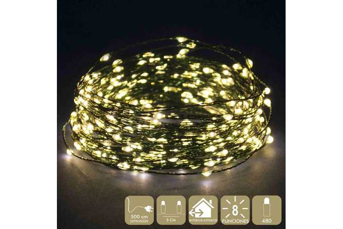 FUNCIONA CON LA RED ELÉCTRICA 6W. TRANSFORMADOR CON 8 FUNCIONES. IP44 (USO INTERIOR / EXTERIOR) CABLE DE COLOR VERDE DISTANCIA ENTRE BOMBILLAS: 5 CM. 480 LEDS DE LUZ CÁLIDA EXTENSIÓN DE CABLE: 5 METROS. ESTE PRODUCTO NO TIENE LA FUNCIÓN DE TEMPORIZADOR.. PRESENTACIÓN EN CAJA IMPRESA EN COLOR.
