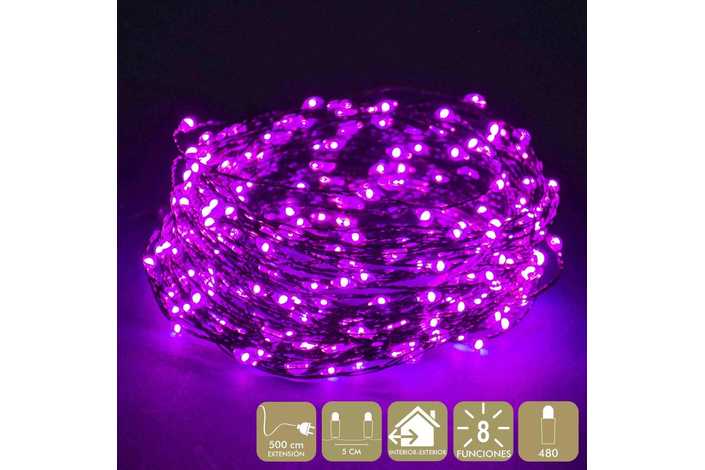 USO INTERIOR/EXTERIOR (IP44). CADENA A LA RED ELÉCTRICA. 8 FUNCIONES. CON TRANSFORMADOR (12V). DISTANCIA ENTRE LUCES 5CM . EXTENSIÓN CABLE: 5 METROS. LONGITUD TOTAL: 23,95 METROS. CABLE VERDE