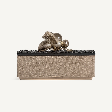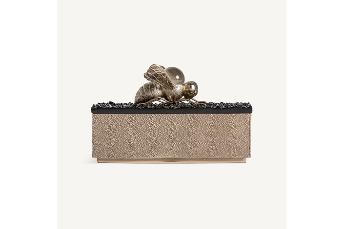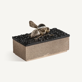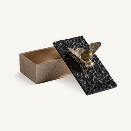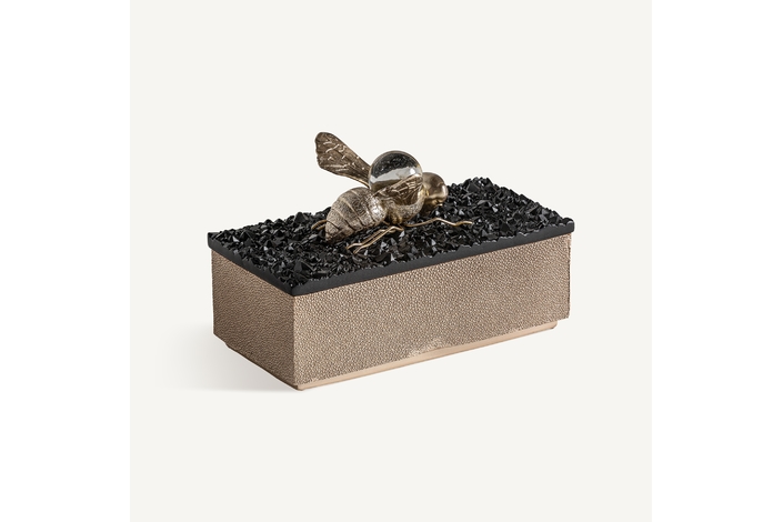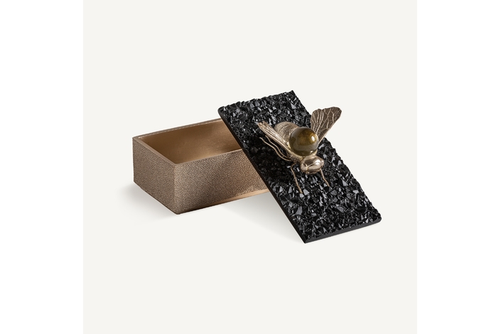 Caja, en color negro/oro, de estilo art deco. Fabricado en resina.