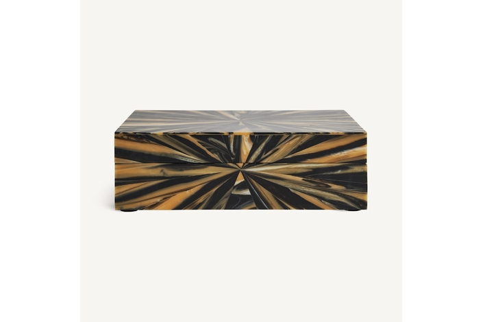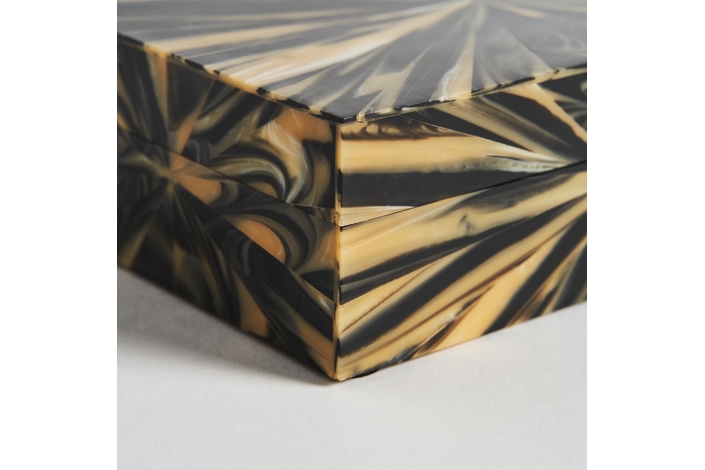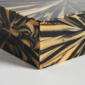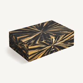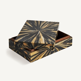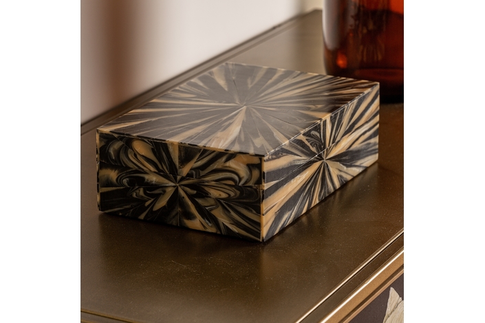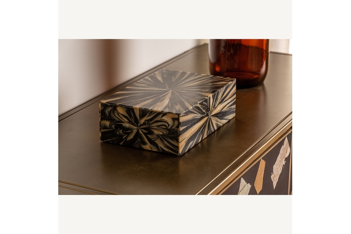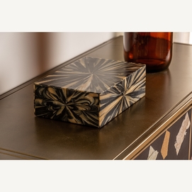 Caja blene, en color negro/oro, de estilo art deco. Fabricado en hueso, combinado con resina.