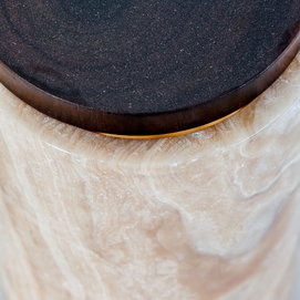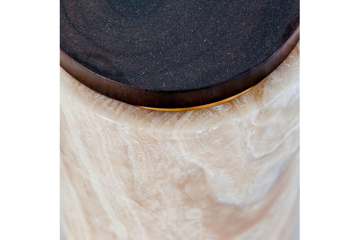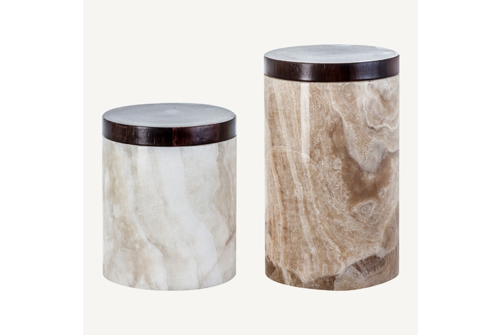Caja j/2 cilindrica daily, en color marrón/blanco, de estilo colonial. Fabricado en onix. Al ser un material natural, puede variar la tonalidad de los botes.