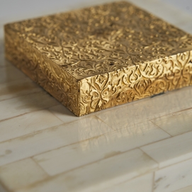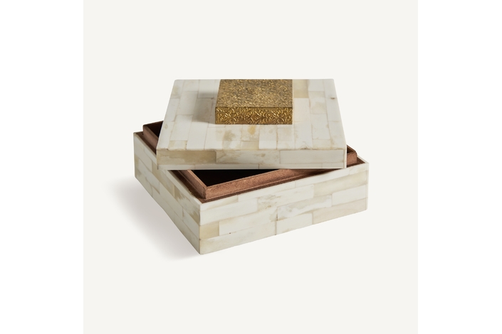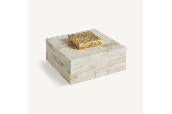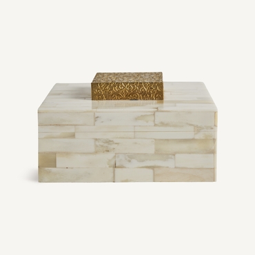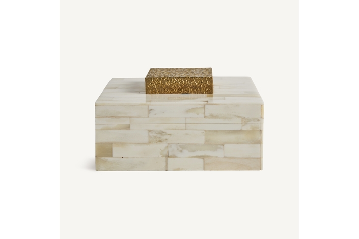 Caja kaia, en color marfil, de estilo nórdico. Fabricado en hueso, combinado con resina.