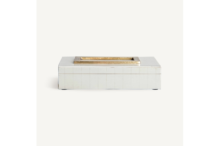Caja zonza, en color blanco/oro, de estilo art deco. Fabricado en hueso.