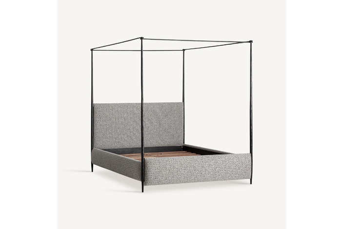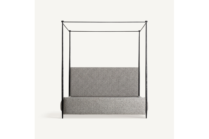 Cama, fabricado en hierro en color negro, combinado con algodón en color beige.