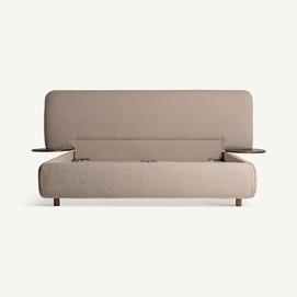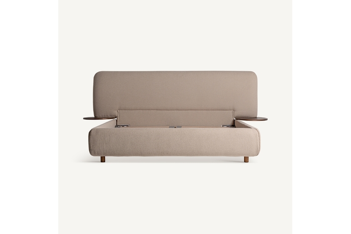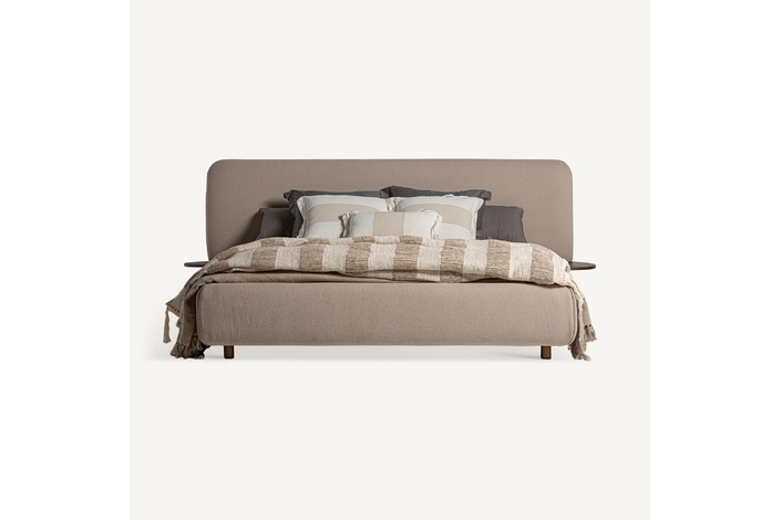 Cama dayton, de estilo provenzal. Fabricado en lino, en color beige, combinado con madera de pino y espuma. Producto desmontable.