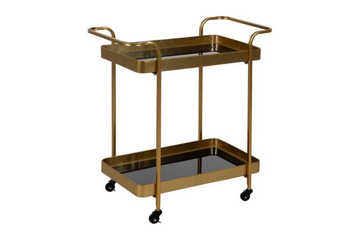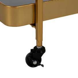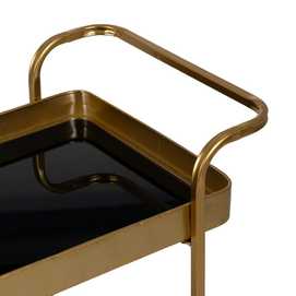 Altura total:75cm. Medidas bandejas:56,3x34x5,2cm. Distancia entre bandejas:50cm. MATERIAL: Hierro. Requiere montaje. Sobre de cristal color negro. LLeva incorporadas las 4 ruedas.