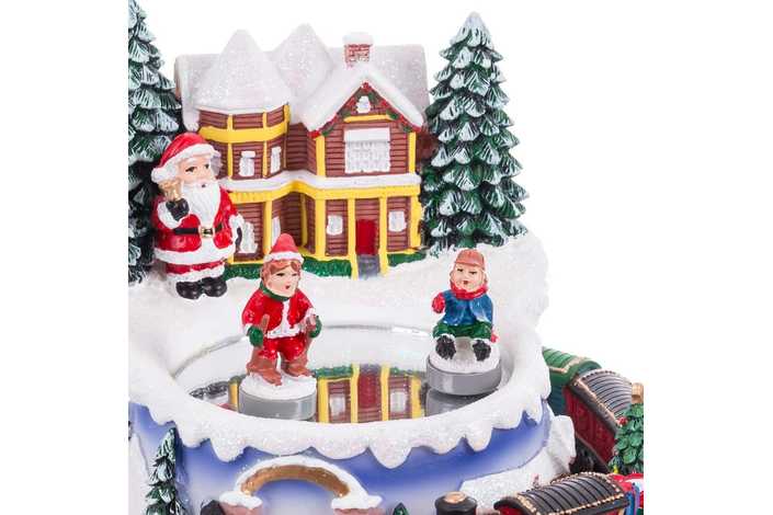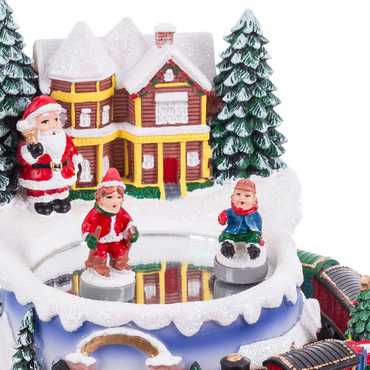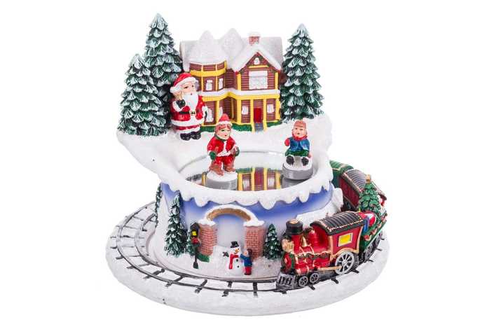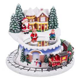 CASA CON TREN MÚSICA Y MOVIMIENTO RESINA 16 X 16 X 15,50 CM