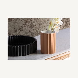 Toda la artesanía, cuidado del detalle, diseño y estética de la colección PLISSÉ de VICALDESIGN, plasmada en los nuevos jarrones creados y diseñados en colaboración con EstudiHac. El eje conductor del diseño se basa principalmente en los tejidos plisados y la adaptación de éstos a las formas tridimensionales de los productos VICAL