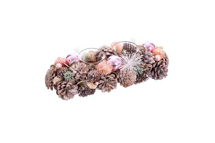 CENTRO MESA 2 PORTAVELAS BLANCO-ROSA 32 X 15 X 9 CM