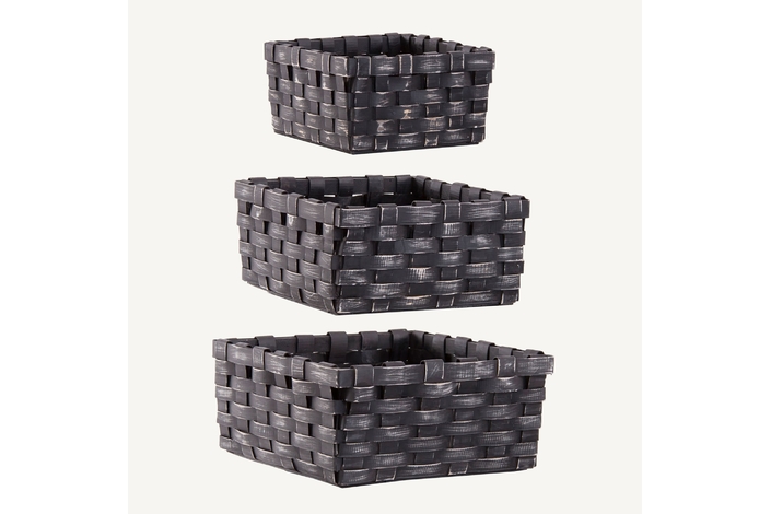 Cesta j/3, en color negro decapado, de estilo provenzal. Fabricado en mimbre.