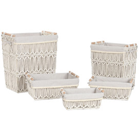 CESTA ROPA SET 5 MACRAME METAL 42X32X51 BLANCO