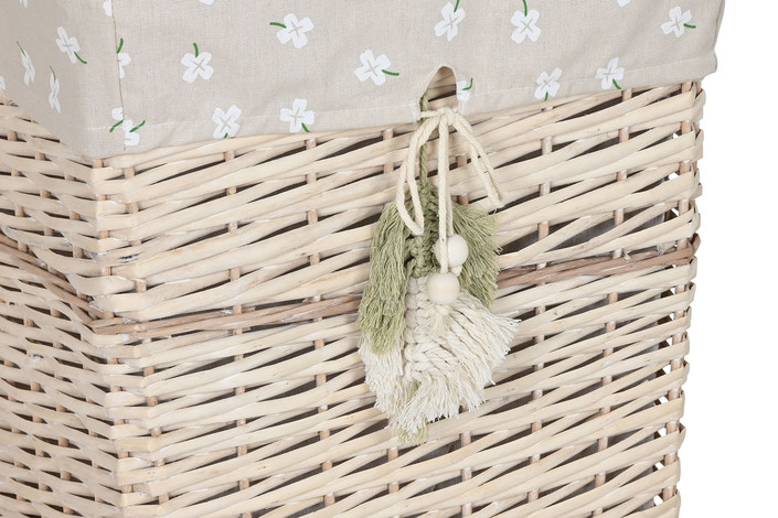 Dimensiones (cm) Longitud 47  |  Fondo 35  |  Altura 55 Peso neto producto (kg) 3,40 Material Mimbre  |  Algodon