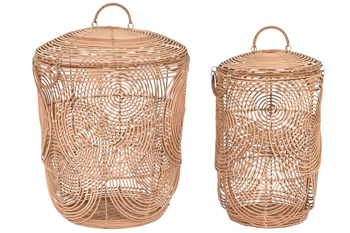 CESTA SET 2 RATAN 45X45X57 CON TAPA NATURAL