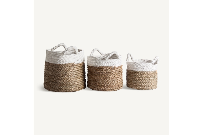 Cesto j/3 kaole, en color blanco/natural, de estilo vintage. Fabricado en mimbre.