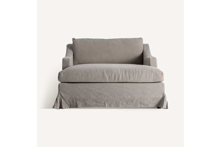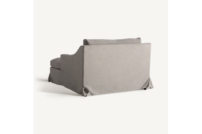 Chaise longue, fabricado en lino en color beige, combinado con algodón y espuma.