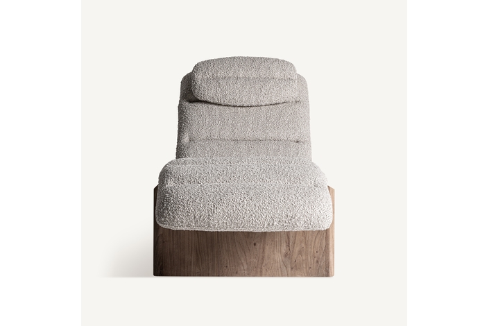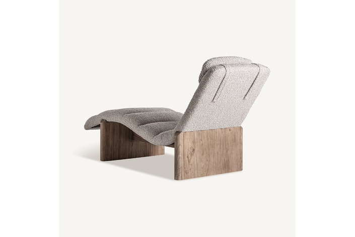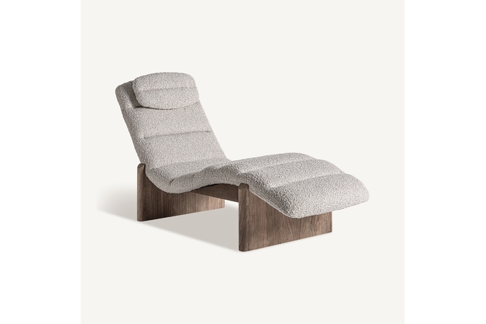 Chaise longue jacquard, de estilo contemporáneo. Fabricado en madera roble, en color marrón, combinado con poliéster, en color beige.