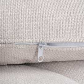 Material: 100% poliéster. Patas: metal Relleno: foam Altura asiento: 45cm. Profundidad asiento: 60/80cm. Ancho asiento: 204cm. Altura reposabrazos derecho: 26/72cm. Altura reposabrazos izquierdo: 26/63cm. Grueso cojín: 15cm. Altura pata: 15cm. Patas paramontar. Las posibles sombras o marcas en el tejido son debidas al embalaje de las piezas. Desapareciendo fácilmente con la aplicación de vapor.