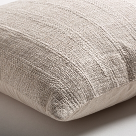 Cojín angeus, en color blanco roto, de estilo provenzal. Fabricado en lino, combinado con poliéster. Producto desenfundable.