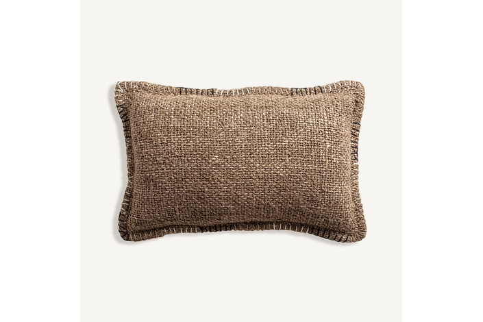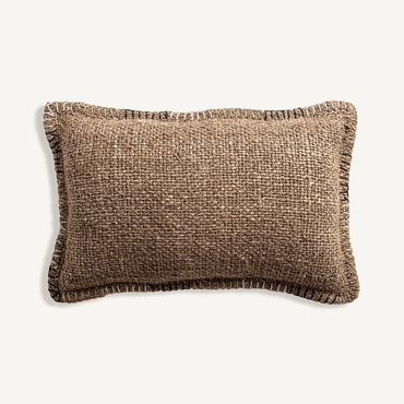 Cojín aziel, de estilo boho. Fabricado en algodón, en color marrón, combinado con viscosa y guata sintética. Producto desenfundable.