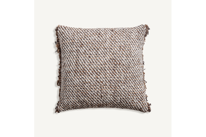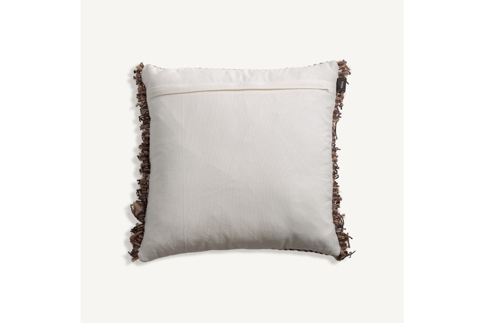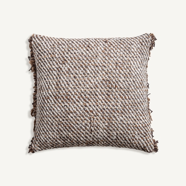 Cojín baruch, de estilo boho. Fabricado en algodón, en color tonos en marrón jaspeado, combinado con viscosa y guata sintética. Producto desenfundable.