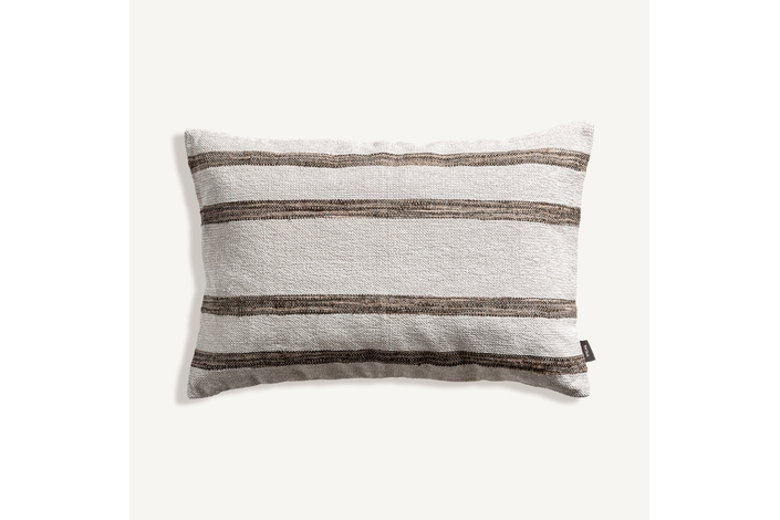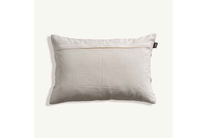 Cojín boris, de estilo clásico. Fabricado en algodón, en color blanco, combinado con terciopelo, en color marrón y guata sintética. Producto desenfundable.