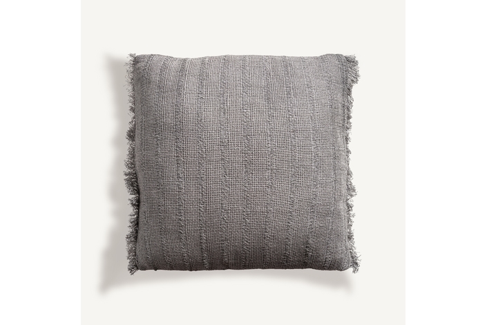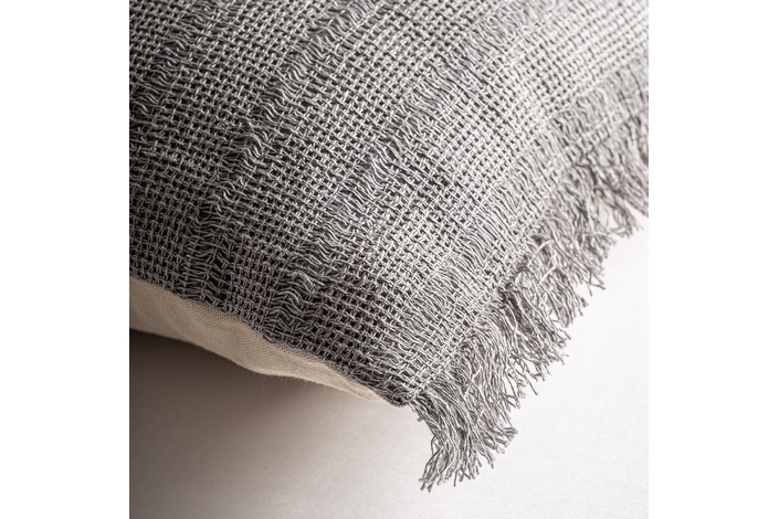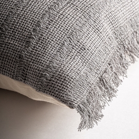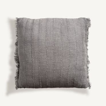 Cojín brais de estilo clásico, fabricado en lino en color gris, combinado con guata sintética. Producto desenfundable.