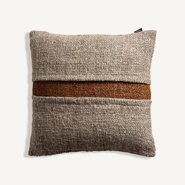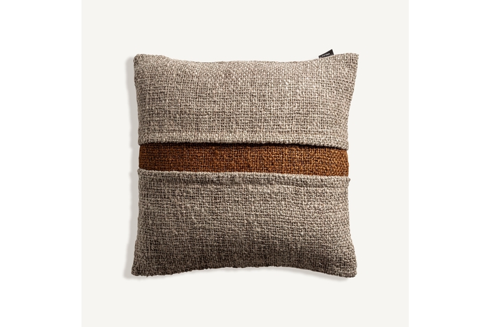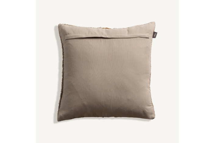 Cojín edris, de estilo clásico. Fabricado en algodón, en color tonos en marrón, combinado con terciopelo, en color beige liso y guata sintética. Producto desenfundable.