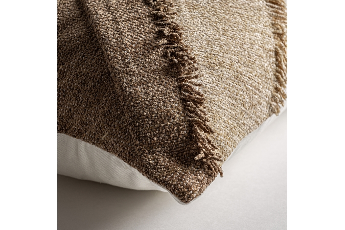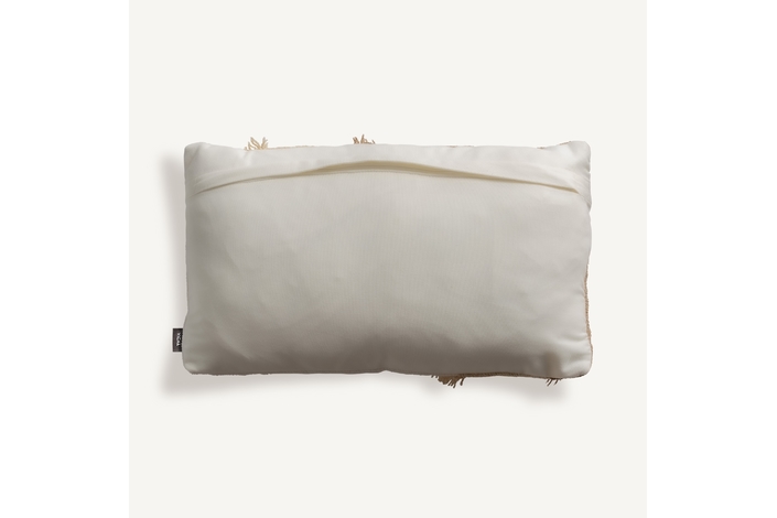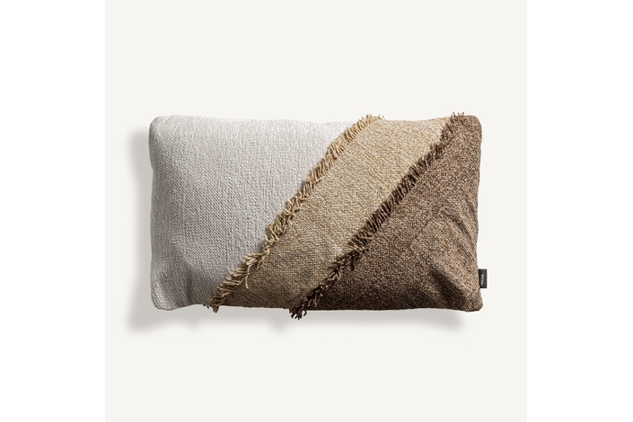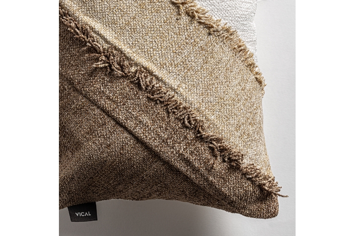 Cojín euken de estilo clásico, fabricado en algodón en color tonos en marrón, combinado con terciopelo en color blanco con acabado liso y guata sintética.