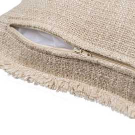COJÍN RELLENO POLIÉSTER COMPOSICIÓN TEJIDO DELANTERA: 50% ALGODÓN - 43% POLIÉSTER - 7% LINO. COMPOSICIÓN TEJIDO TRASERA: 100% ALGODÓN. RELLENO POLIESTER, GRAMAJE: 350 GR. ENVASADO AL VACÍO INSTRUCCIONES DE LAVADO: - LAVAR MÁXIMO A 30ºC. - NO USAR LEJÍA -NO METER EN LA SECADORA - PLANCHAR TEMPERATURA SUAVE - NO LIMPIAR EN SECO DESENFUNDABLE CON CREMALLERA