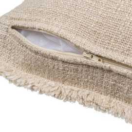 COJÍN RELLENO POLIÉSTER COMPOSICIÓN TEJIDO DELANTERA: 50% ALGODÓN - 43% POLIÉSTER - 7% LINO. COMPOSICIÓN TEJIDO TRASERA: 100% ALGODÓN. RELLENO POLIESTER, GRAMAJE: 400 GR. ENVASADO AL VACÍO INSTRUCCIONES DE LAVADO: - LAVAR MÁXIMO A 30ºC. - NO USAR LEJÍA -NO METER EN LA SECADORA - PLANCHAR TEMPERATURA SUAVE - NO LIMPIAR EN SECO DESENFUNDABLE CON CREMALLERA