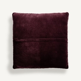 Cojín lis, en color marrón bordado, de estilo clásico. Fabricado en terciopelo, combinado con algodón y poliéster. Producto desenfundable.