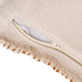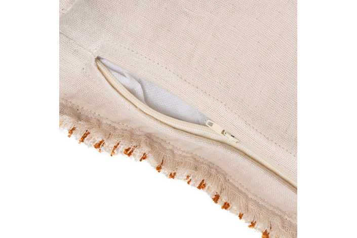 COJÍN RELLENO POLIÉSTER COMPOSICIÓN TEJIDO DELANTERA: 80% VISCOSA - 20% LINO. COMPOSICIÓN TEJIDO TRASERA: 100% ALGODÓN RELLENO POLIESTER, GRAMAJE: 400 GR. ENVASADO AL VACÍO INSTRUCCIONES DE LAVADO: - LAVAR MÁXIMO A 30ºC. - NO USAR LEJÍA - NO METER EN LA SECADORA - PLANCHAR TEMPERATURA SUAVE - NO LIMPIAR EN SECO DESENFUNDABLE CON CREMALLERA