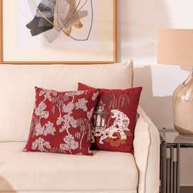 COJÍN 61% ALGODÓN - 39% POLIÉSTER TEJIDO PROCEDENTE DE FIBRAS RECICLADAS GRAMAJE: 390 GR./M2 RELLENO: POLIÉSTER 300GR. ENVASADO AL VACÍO. INSTRUCCIONES DE LAVADO: - LAVAR MÁXIMO A 30ºC. - NO USAR LEJÍA - NO METER EN LA SECADORA - SE PUEDE PLANCHAR - NO LIMPIAR EN SECO CREMALLERA