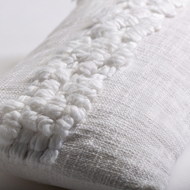Cojín xenia, en color blanco, de estilo provenzal. Fabricado en algodón y poliéster. Producto desenfundable.
