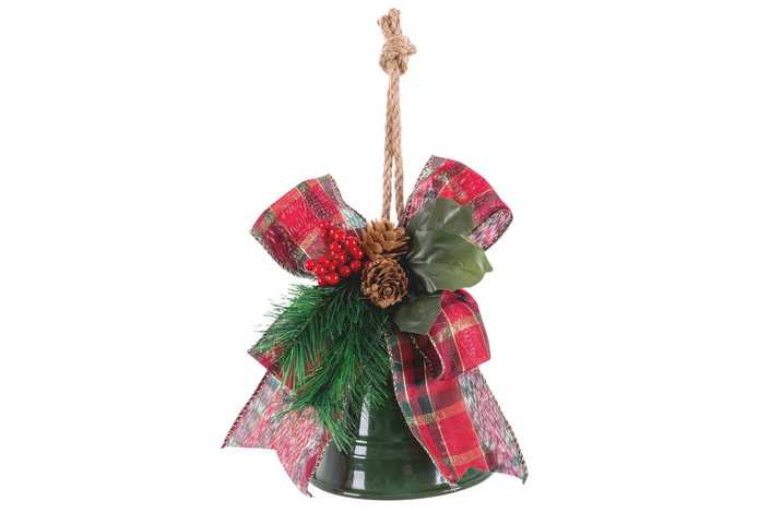 COLGANTE CAMPANA CON ACEBO METAL VERDE 10 X 10 X 24 CM