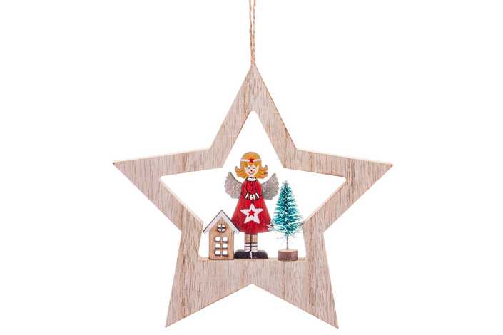 COLGANTE ESTRELLAS ÁNGEL MADERA 15,50 X 1,20 X 15 CM
