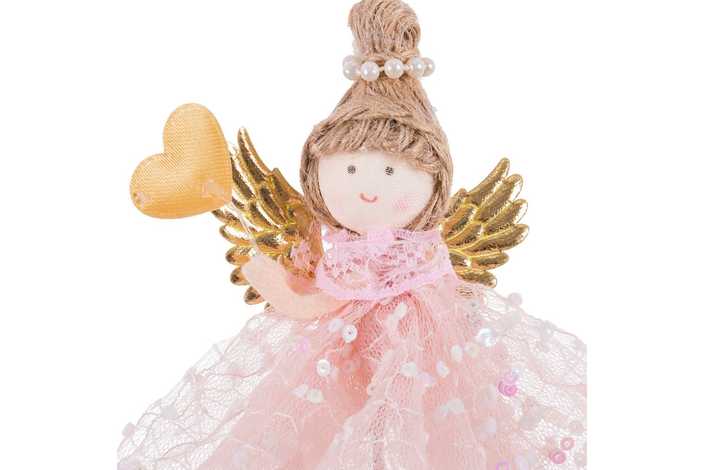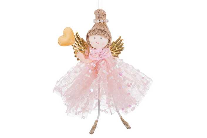 COLGANTE ÁNGEL CORAZÓN TEJIDO ROSA 10 X 3,50 X 16 CM