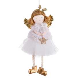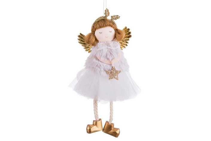 COLGANTE ÁNGEL POLIESTER BLANCO-ORO 6 X 4 X 15 CM