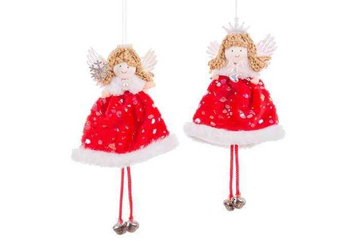 COLGANTE ÁNGEL TEJIDO ROJO 2/M 10 X 3 X 16 CM