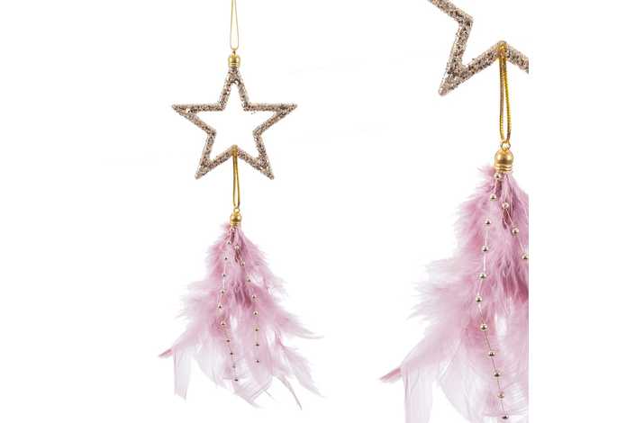 COLGANTE PLUMA ROSA 8 X 12 CM