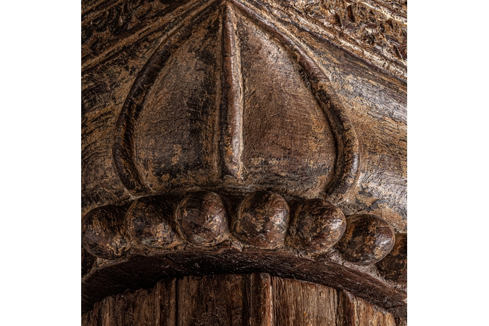 Columna basimah, en color marrón envejecido, de estilo étnico. Fabricado en madera de teka.