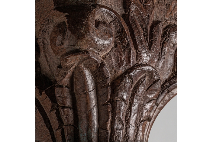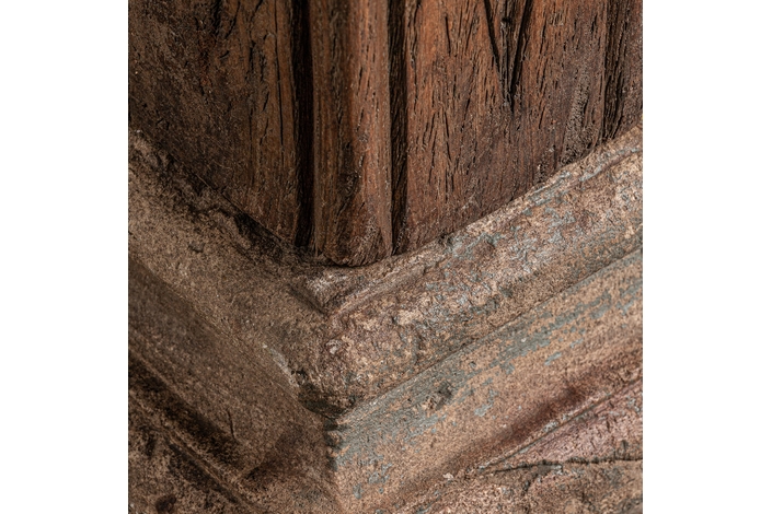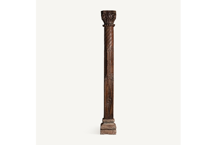 Columna bastet, en color marrón envejecido, de estilo étnico. Fabricado en madera de teka. Producto desmontable.