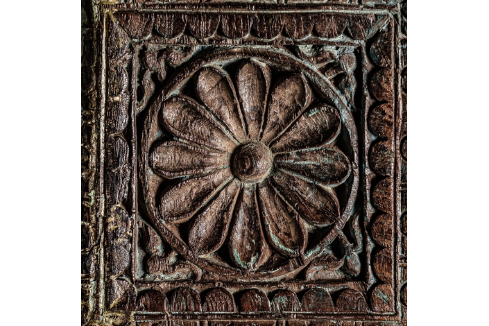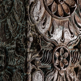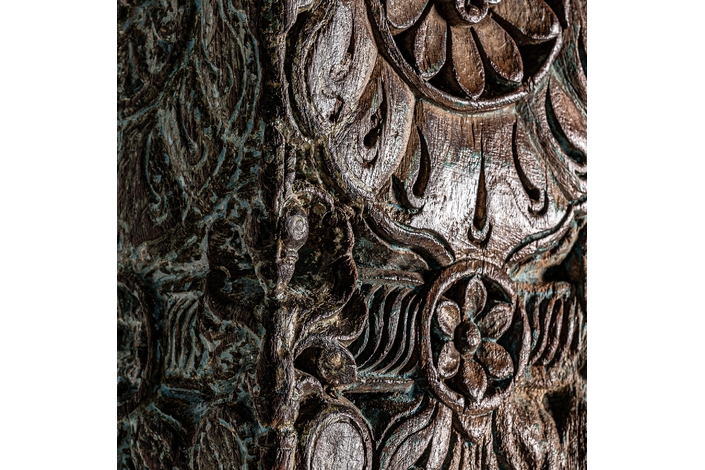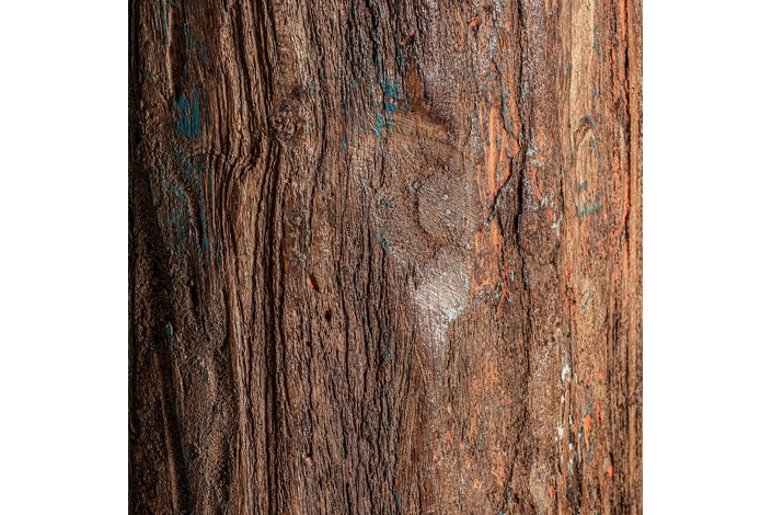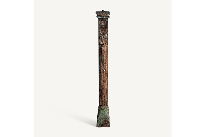 Columna byron, en color marrón envejecido, de estilo étnico. Fabricado en madera antigua, combinado con piedra.