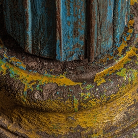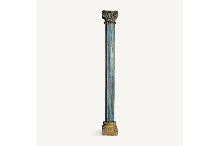 Columna cadee, en color tonos de azul envejecido, de estilo étnico. Fabricado en madera de teka. Producto desmontable.