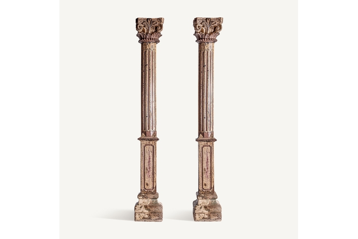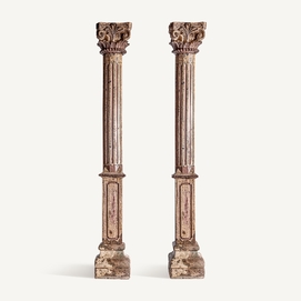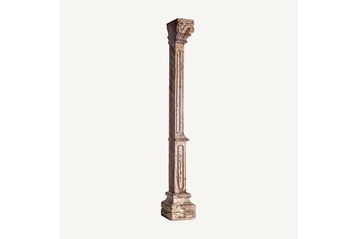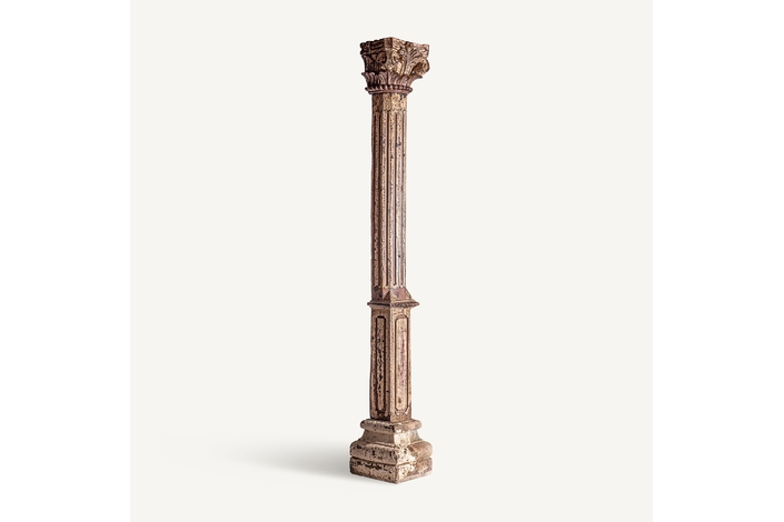 Columna dasha, en color tonos en marrón envejecido, de estilo étnico. Fabricado en madera de teka.