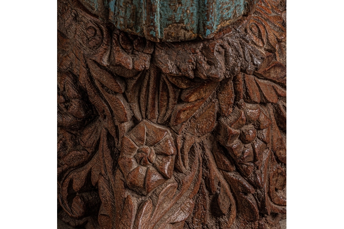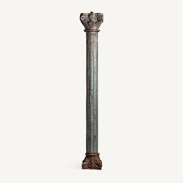 Columna gazit, en color tonos de azul envejecido, de estilo étnico. Fabricado en madera de teka. Producto desmontable.
