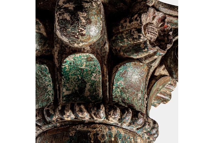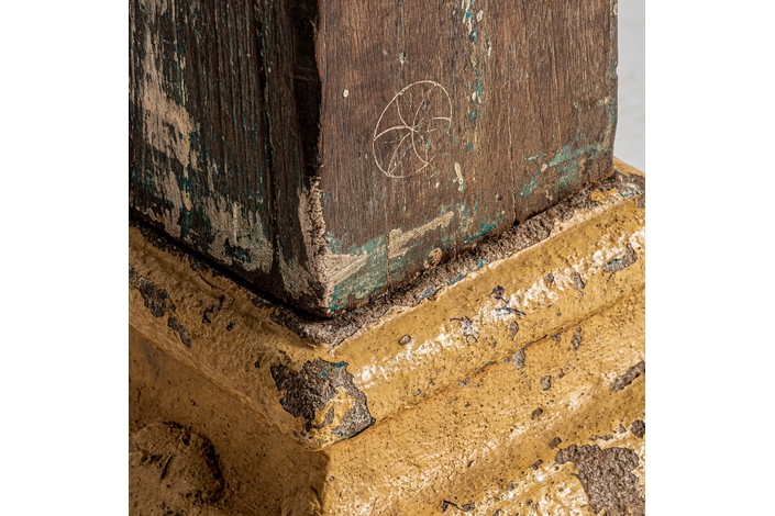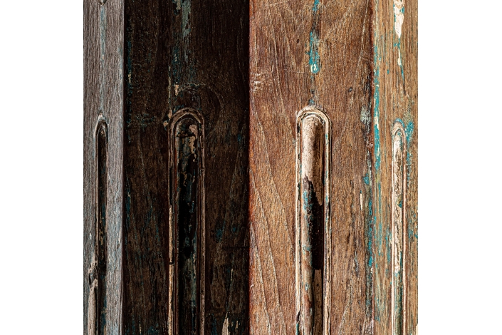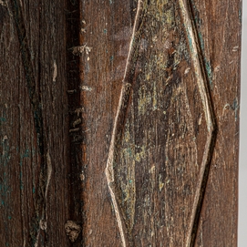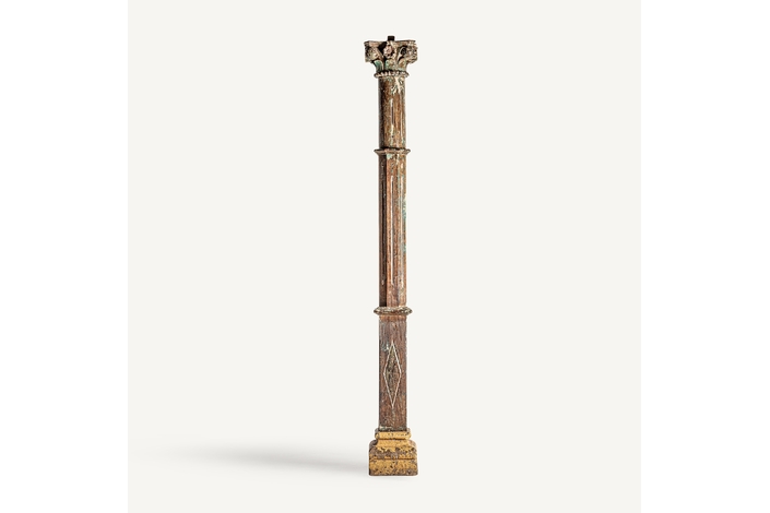 Columna gelhe, en color marrón envejecido, de estilo étnico. Fabricado en madera de teka. Producto desmontable.