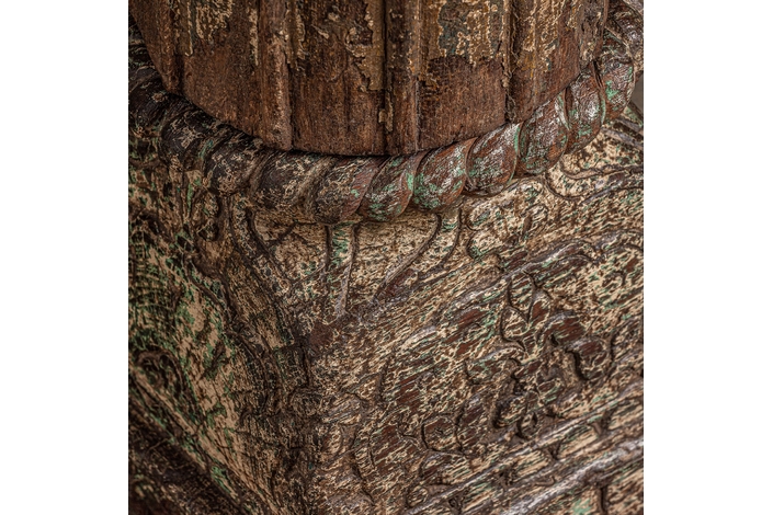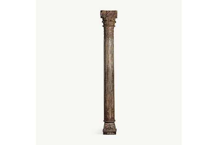 Columna haesel, en color marrón envejecido, de estilo étnico. Fabricado en madera de teka. Producto desmontable.